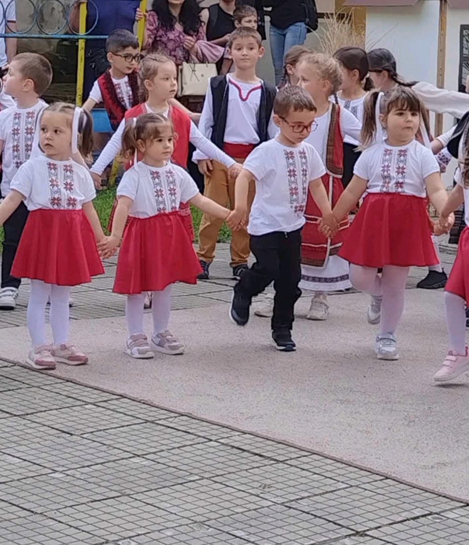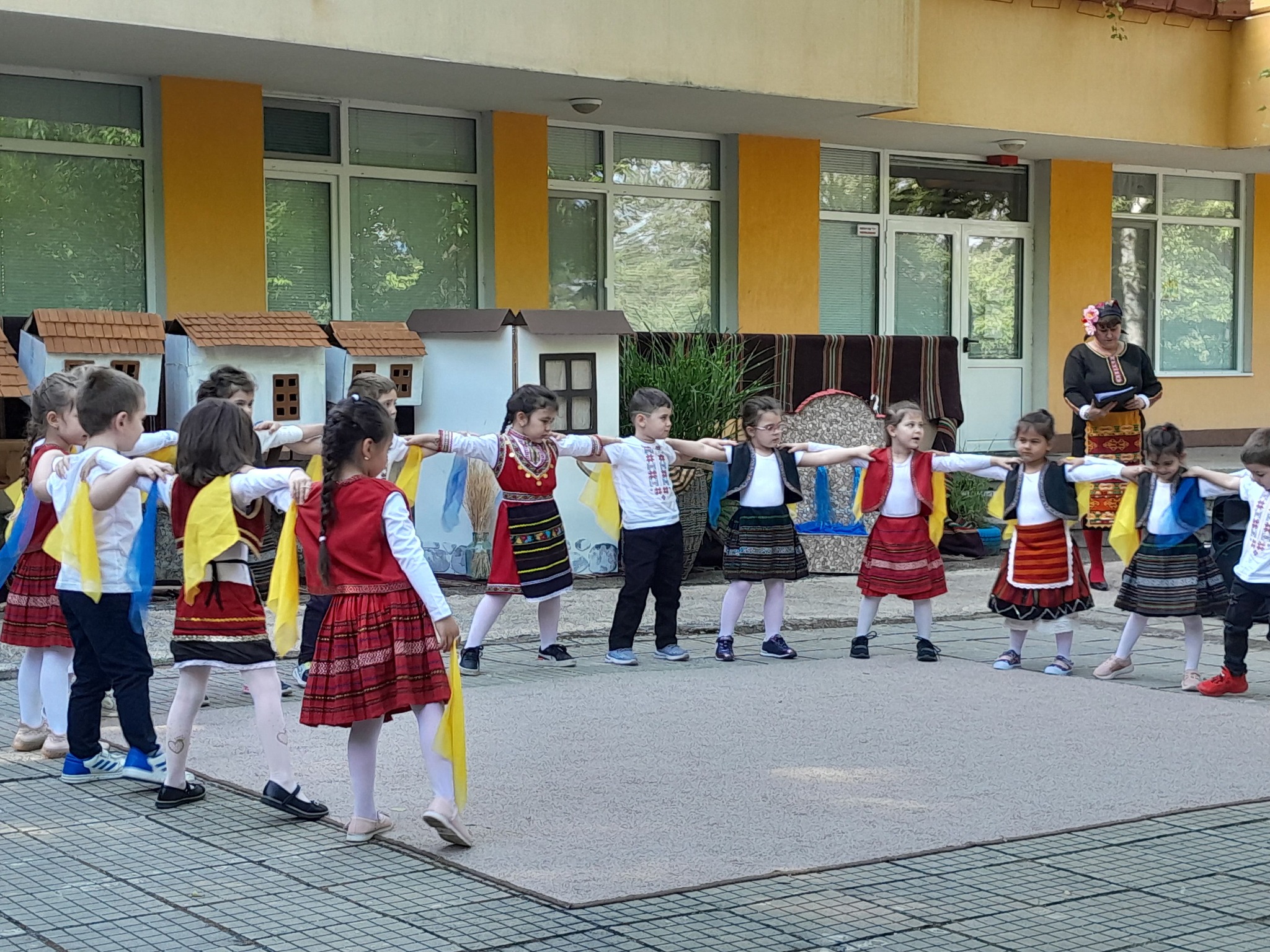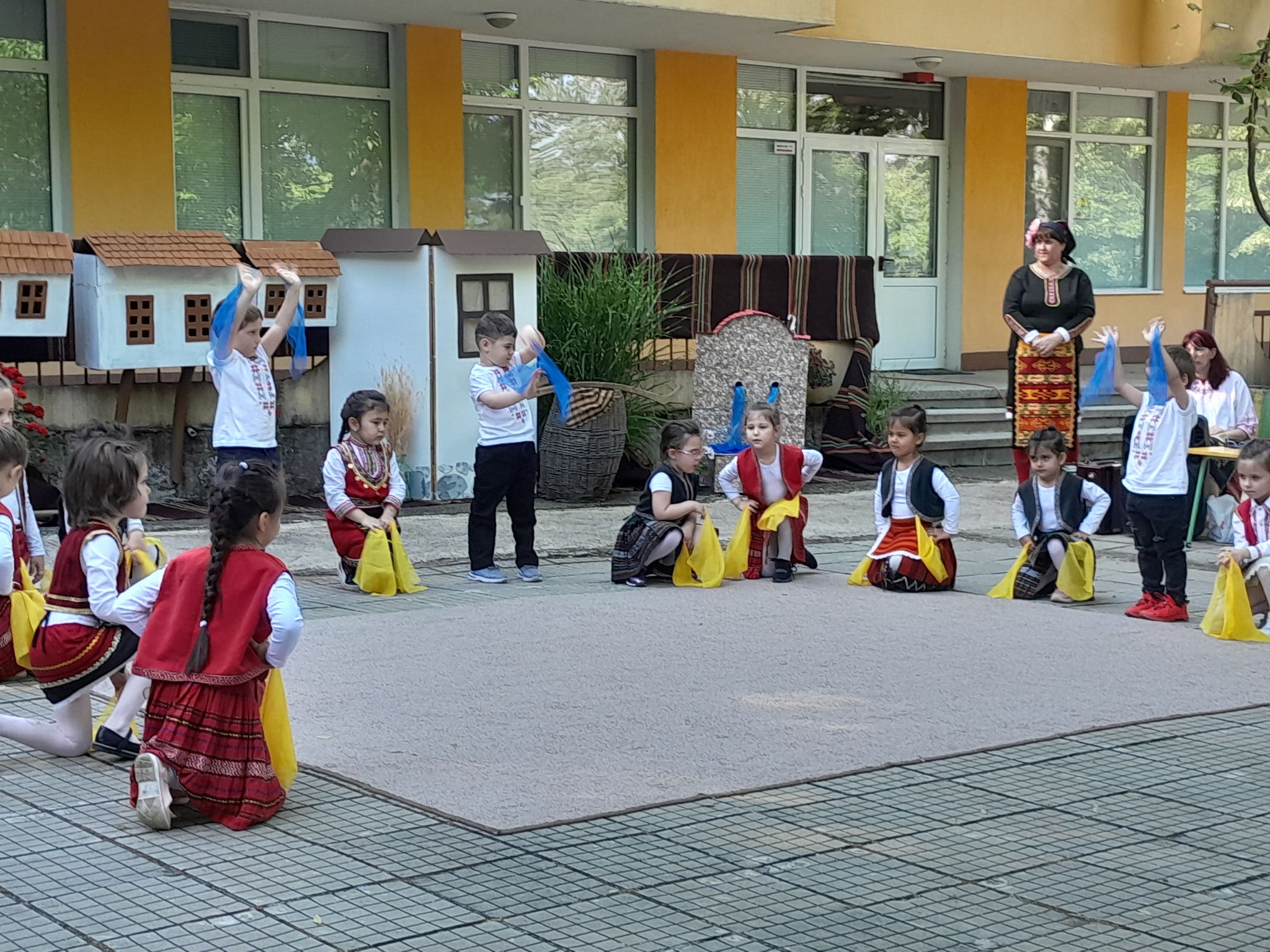 Богатство от ритми в народните танци , красотата на народните носии,диалект, песни от шестте фолклорни области представиха децата от ДГ 11 „Изгрев“ с хореограф г-жа Гергана Тонева в празничен концерт ,,България на шир и длъж“.