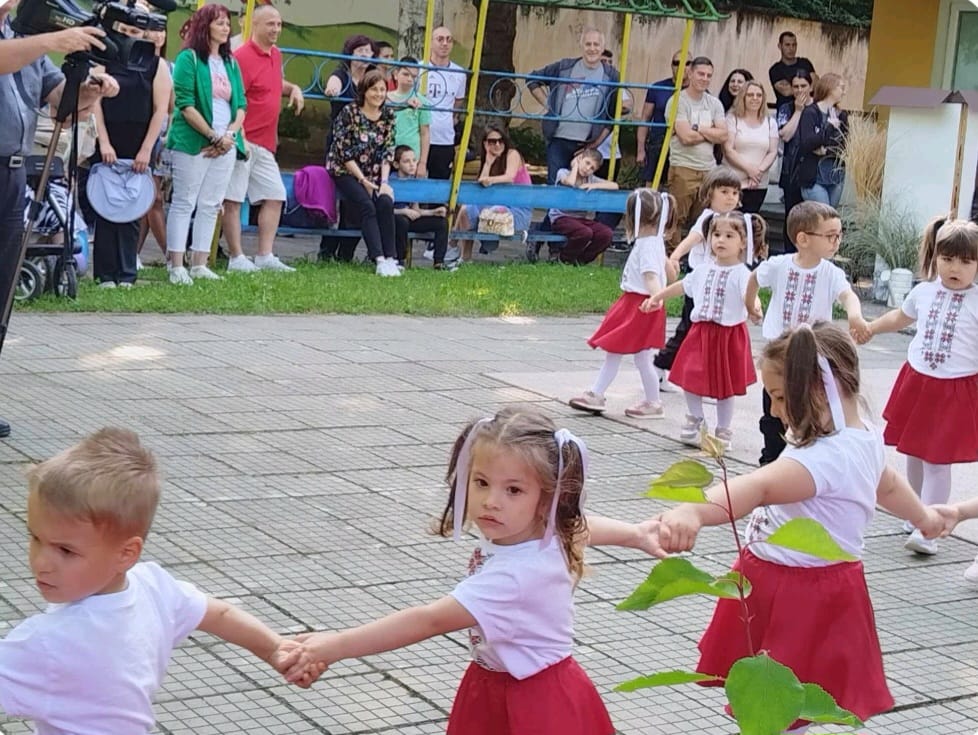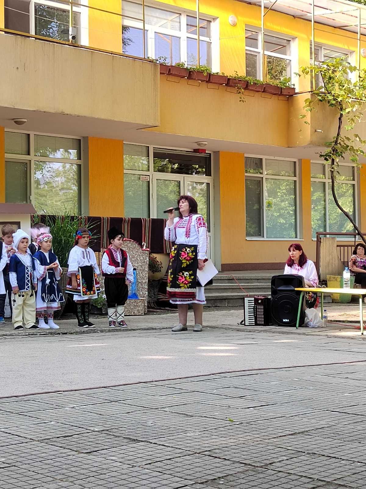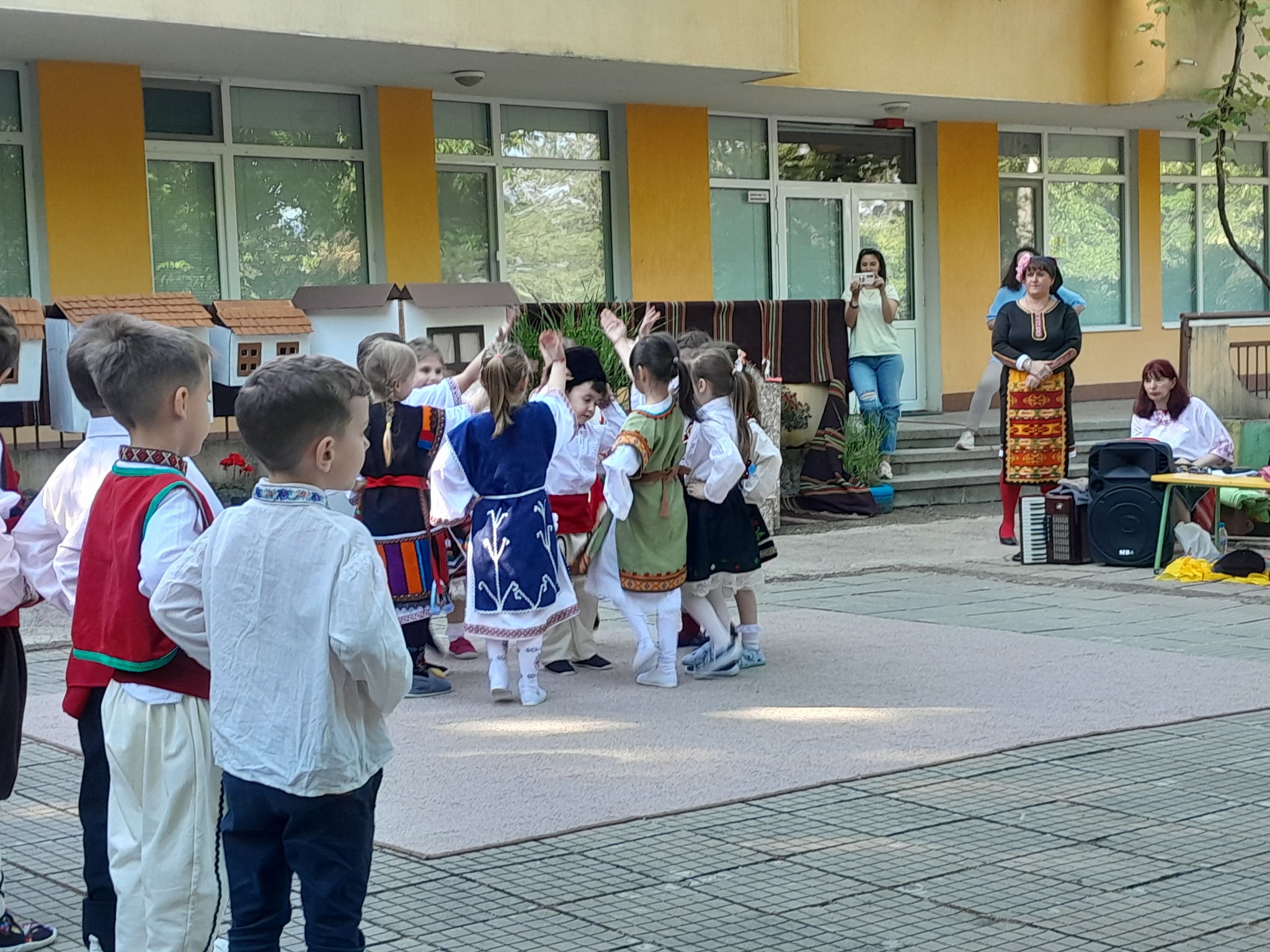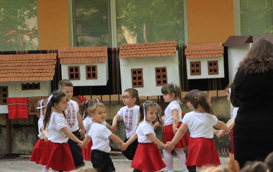 Богатство от ритми в народните танци , красотата на народните носии,диалект, песни от шестте фолклорни области представиха децата от ДГ 11 „Изгрев“ с хореограф г-жа Гергана Тонева в празничен концерт ,,България на шир и длъж“.